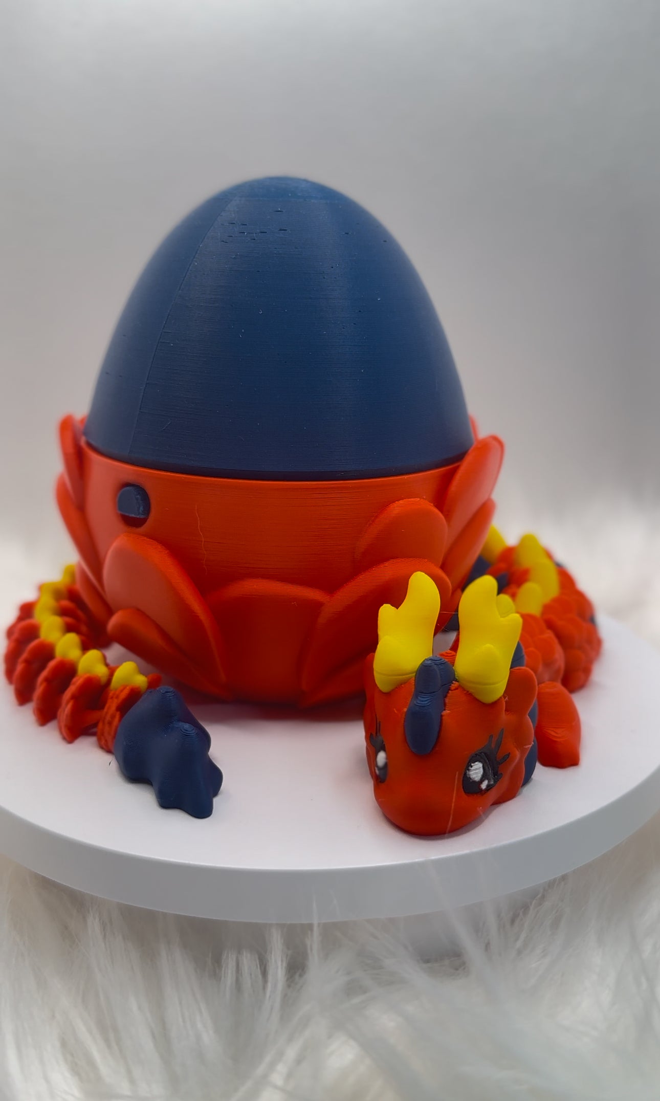 Introducing the 15" Cute Kaida Dragon with Egg! This 3D printed dragon toy is not only adorable, but also a stimulating and interactive fidget toy. With its articulating design and vibrant colors, it's perfect for relieving stress and igniting the imagination.