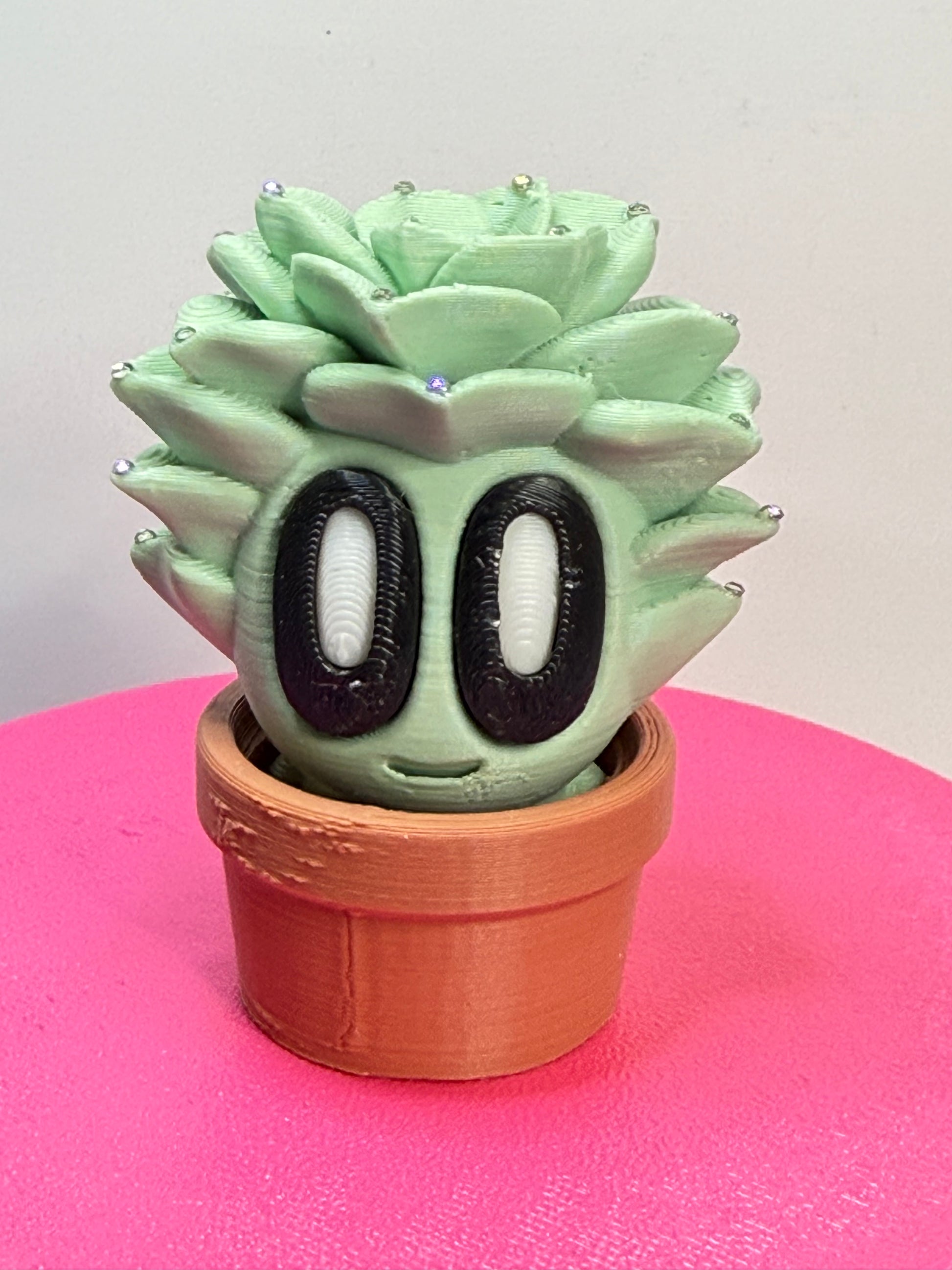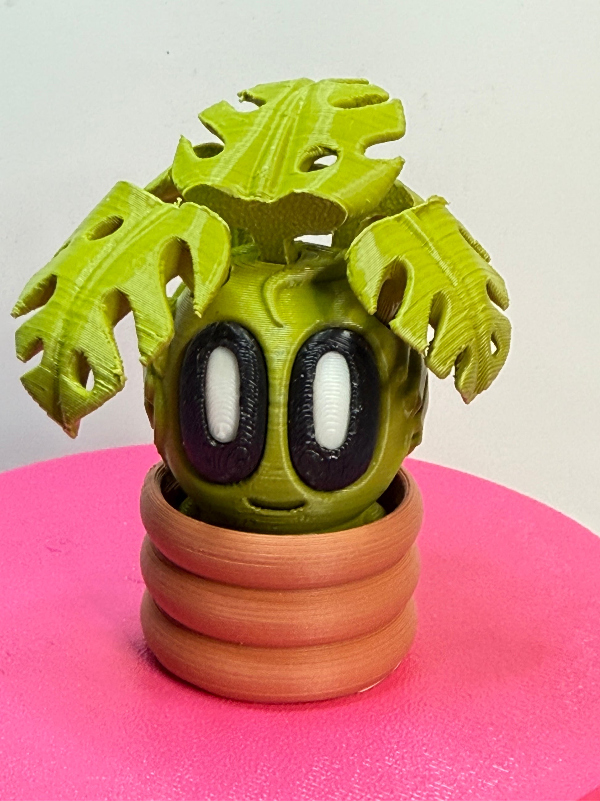 Add some cuteness to your desk with these 2-2.25" potted plants! Choose from Monstera, Ivy, or Succulents, all 3D printed for a unique touch. Perfect for a playful touch to your workspace.