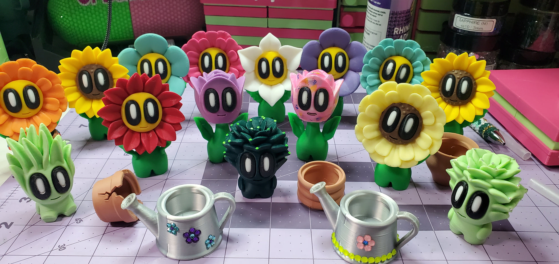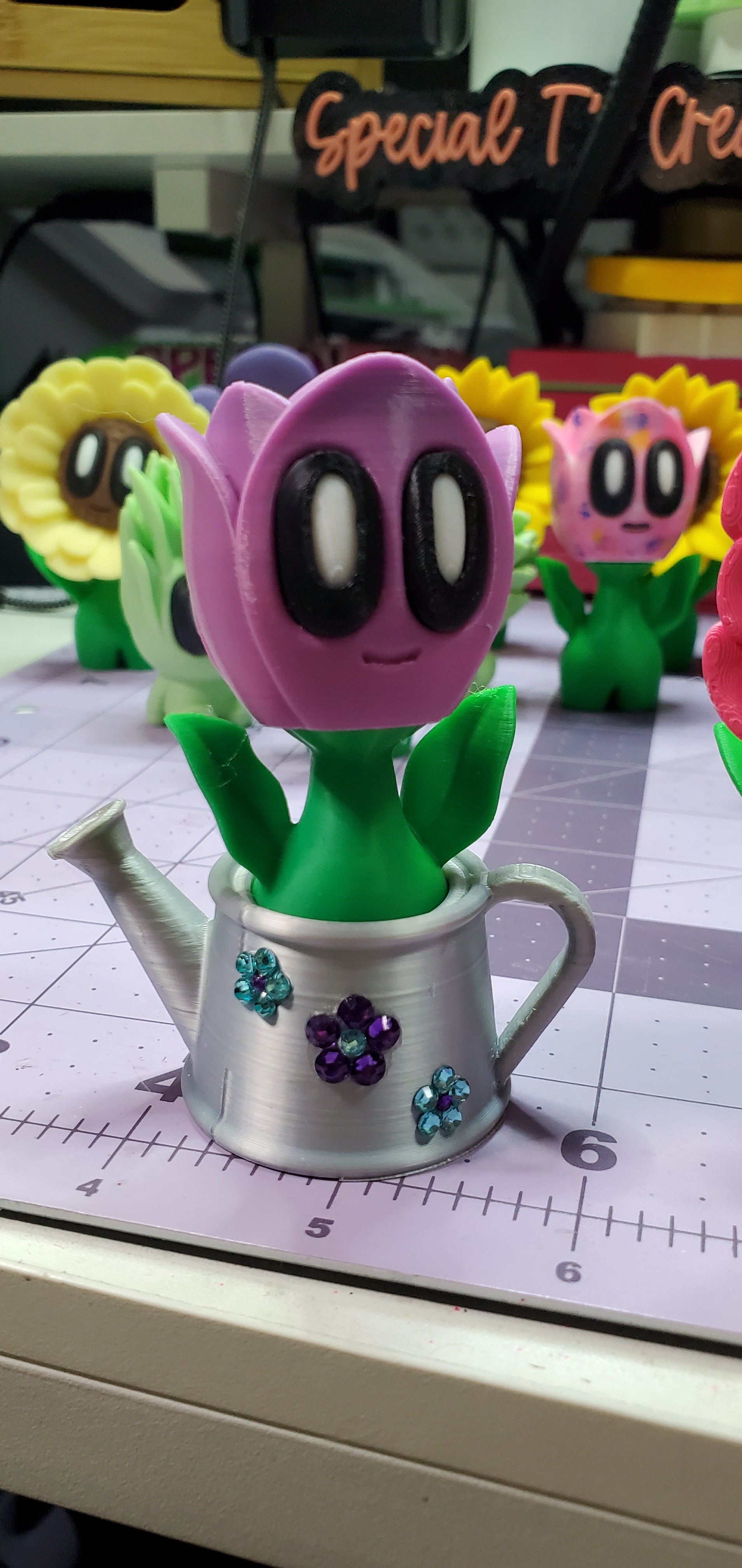 Cutie 3D printed Flowers with removable/interchangeable pots or watering cans! Β