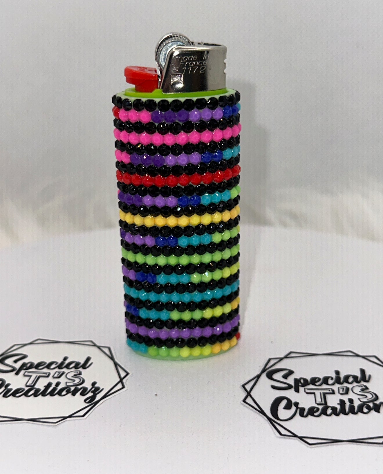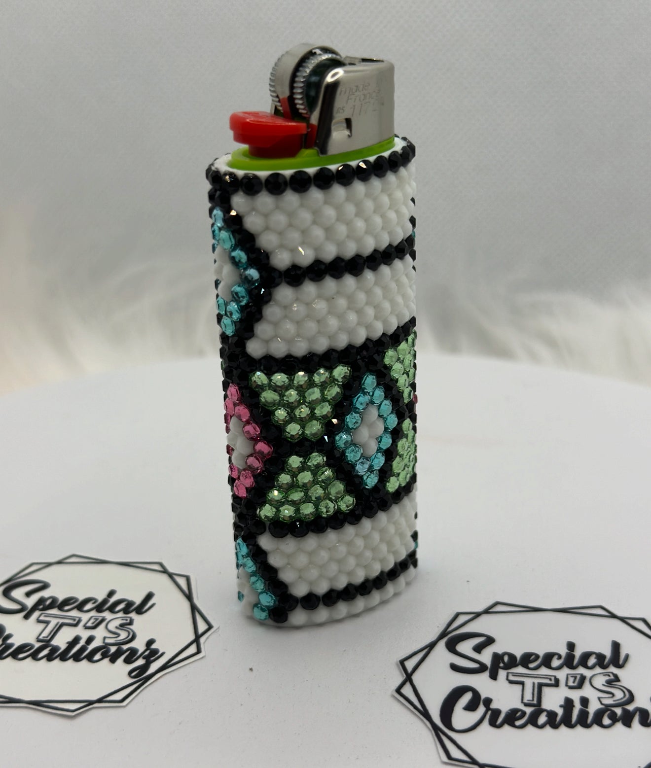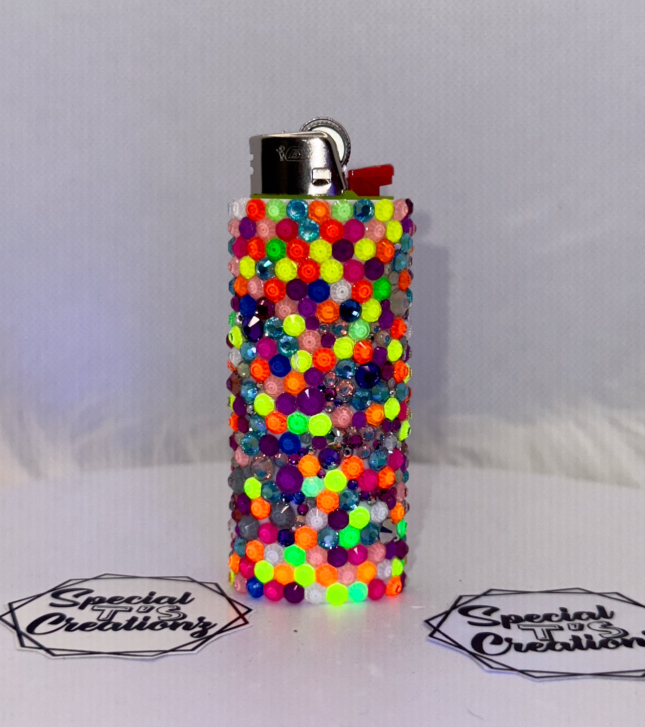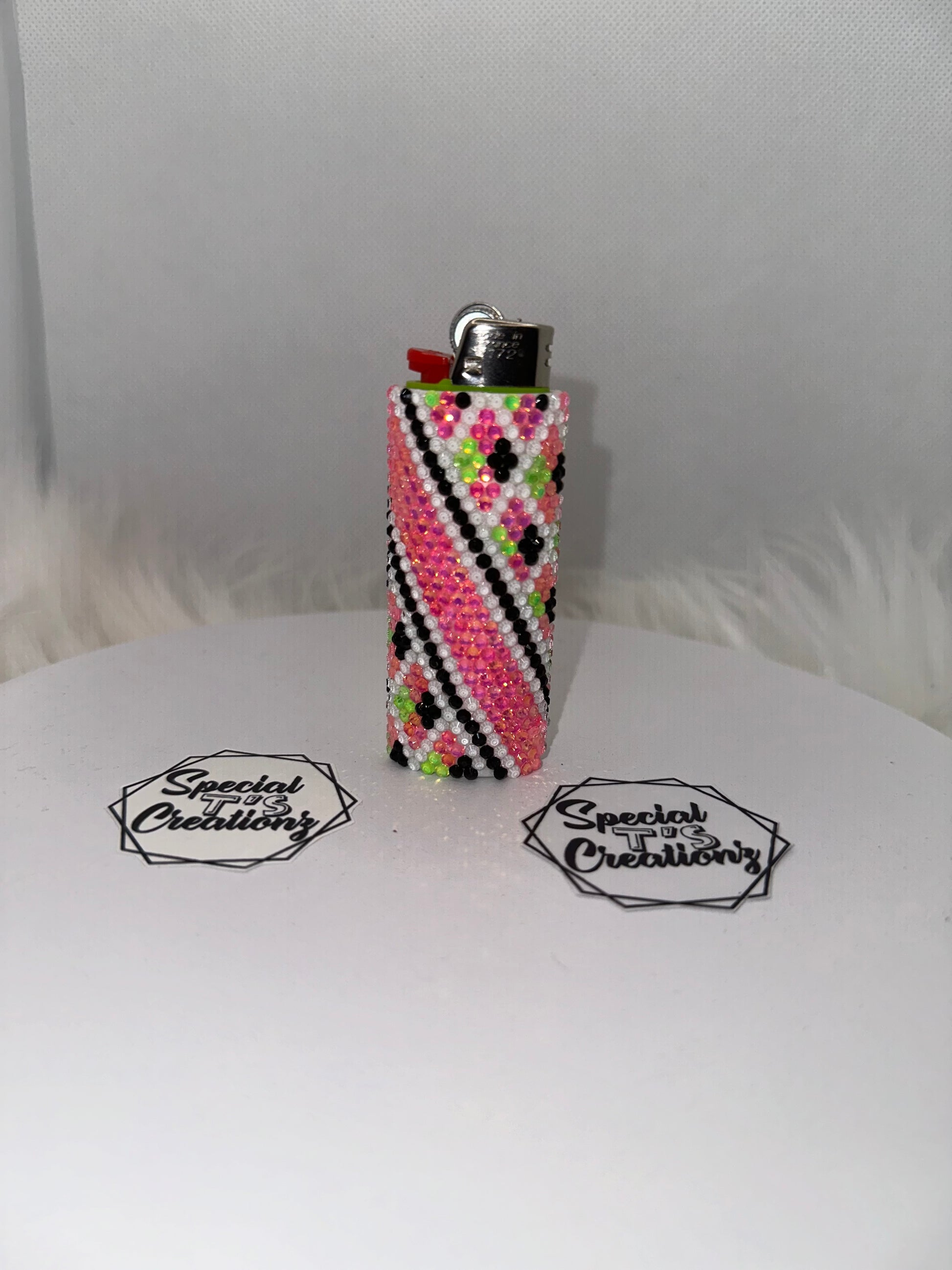 Never lose your lighter again with these reusable Bling Lighter Sleeves. These unique sleeves, featuring rhinestones and one-of-a-kind designs, will make your basic Bic lighter stand out in a crowd. A perfect accessory for those who don't take themselves too seriously. (Lighter not included.)
